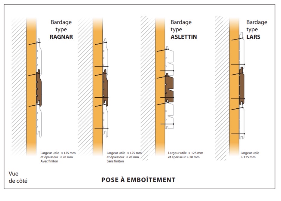 Référence utile : avant toute mise en œuvre, consultez le DTU 41.2 sur le site de l’Afnor. Il décrit en détail les règles techniques à suivre pour les revêtements extérieurs en bois.